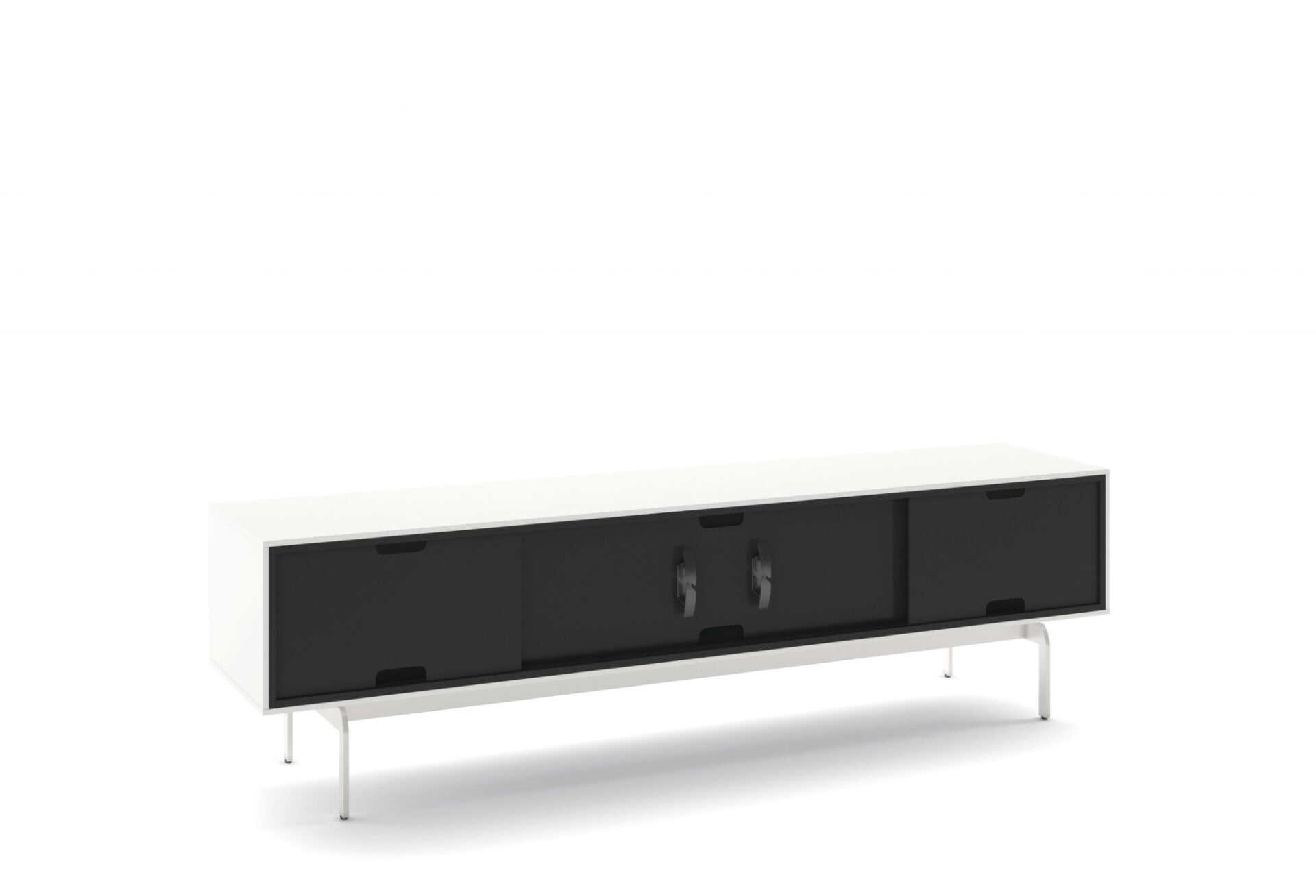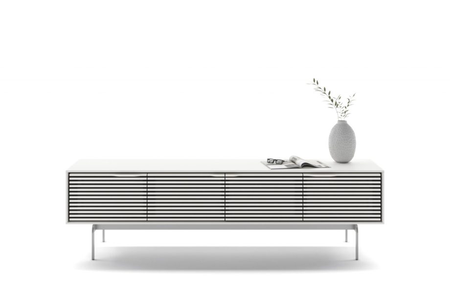 The Align 7473 is a full-featured and low-profile modern TV stand and credenza design that pairs remote and audio-friendly louvered doors with your choice of two available base styles, media or console.